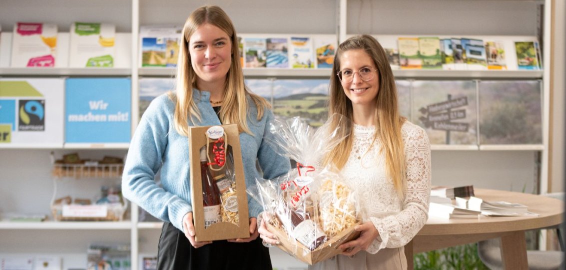 Ziel des Angebots der Haigerer Präsentkörbe ist es, den Bürgerinnen und Bürgern die Vielfalt an Produkten aus der Region sichtbar zu machen. Wer auf die Schnelle ein Geschenk sucht und keine Zeit hat, die Läden einzeln aufzusuchen, für den lohnt sich ganz sicher der Blick in die Touristinfo. Zu betonen ist, dass alle angebotenen Produkte eine hochwertige Qualität haben. Selbstgemachte Nudeln aus Bio-Zutaten, Senf für Feinschmecker, in Haigerseelbach geröstete Kaffeebohnen mit transparenter Lieferkette oder Seife aus Alpaka-Wolle und vieles mehr! Die Fairtrade-Stadt Haiger verwendet biologisch abbaubare Verpackungsmaterialien: Die Klarsichtfolie besteht aus Maisstärke, und die Geschenkkörbe wurden aus Wellpappe hergestellt.