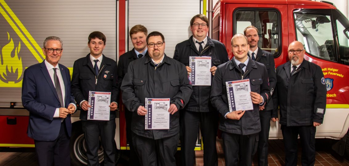 Bürgermeister Mario Schramm bedankte sich für das Engagement der Wehr und richtete seinen Dank auch an die Familien der Einsatzkräfte. Stadtbrandinspektor Andreas Dilauro schloss sich den Dankesworten an und wies in seinen Grußworten bezüglich des geplanten Feuerwehrhauses in der Kernstadt darauf hin, dass dies ein „ein Haus für alle“ sein solle. Es gebe Möglichkeiten für alle Haigerer Wehren, die geforderten Übungsstunden mit feuerwehrtechnischen Inhalten abzulegen.