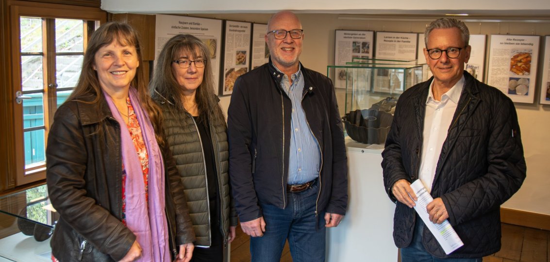 Viele dieser Geräte waren über Jahrzehnte im Einsatz und gehörten selbstverständlich zum Alltag. Bei ihren Recherchearbeiten stellte sich schnell heraus, dass ein erhöhtes Interesse an einem Rezeptbuch besteht, das solche alten Familienrezepte bündelt und zugänglich macht. „Denn Rezepte leben weiter – solange sie gekocht, geteilt und erzählt werden. Aus diesem Grund möchten wir spätestens zum Jahresende ein Rezeptebuch veröffentlichen”, freut sich Menges. Wer also noch Familien-Rezepte oder besondere Traditionen, die damit verbunden sind, beitragen möchte, der kann sich gerne an Susanne Menges (Stadtarchiv, Tel. 02773/811-141; Mail: susanne.menges@haiger.de wenden. Im Stadtmuseum liegen auch fertige Formulare aus, die mitgenommen und ausgefüllt werden können. Und wer schon einen kleinen Vorgeschmack sucht, kann sich die beiden Rezeptkarten Eierkäs und Matzkuchen aus der Sonderausstellung kostenlos mitnehmen. „Der Grundgedanke, der dahinter steckt, ist ja auch: Es wurde nichts weggeworfen. Es wurde alles gegessen, es sei denn der grüne Schimmel war an etwas dran. Sonst wurde alles gegessen”, stellt Andreas Rompf, Kulturamtsleitung, ergänzend fest.