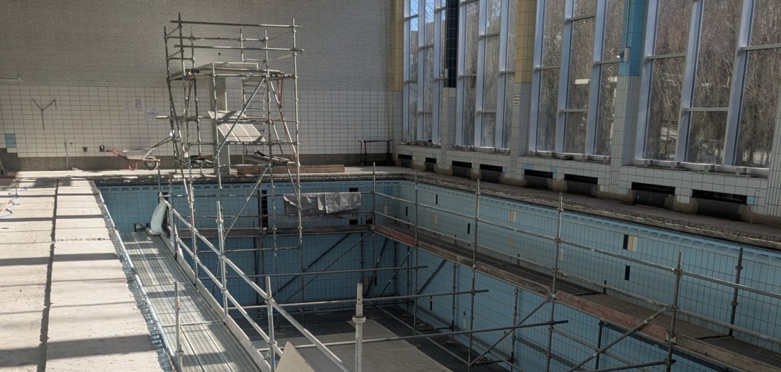 Bei der Sanierung sollten die Fliesen im sogenannten Beckenumlauf und die Fliesen der Wärmebänke nach 60 Nutzungsjahren erneuert werden. Während der Arbeiten wurden weitere Mängel entdeckt, die in Absprache mit den Fachfirmen behoben werden müssen.