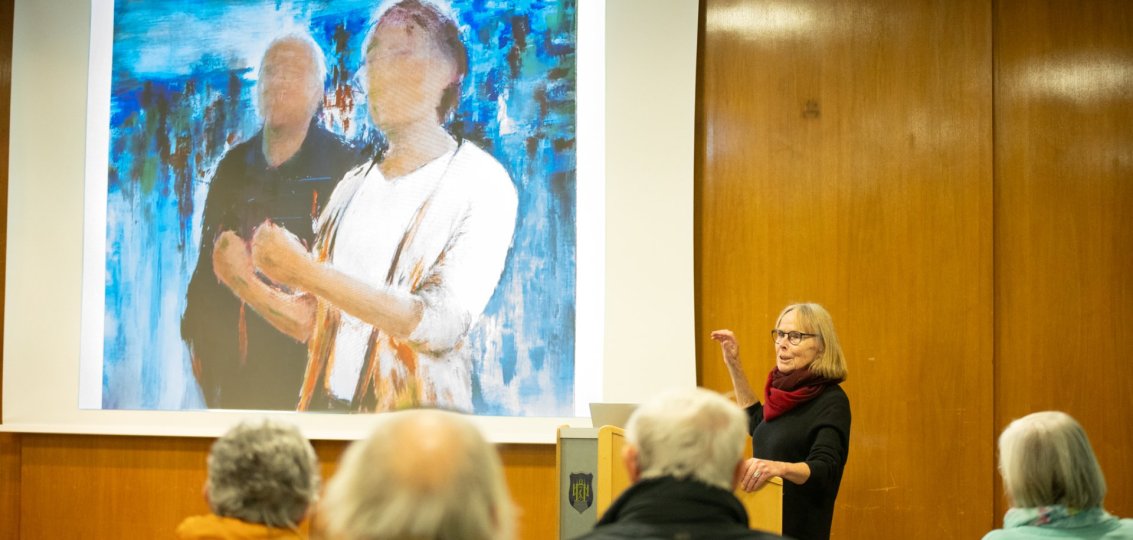 „Manchmal mache ich keine Fotos, dann merke ich mir Farben und mache daraus ein Bild“ – Sigrid Müller-Stahl findet ihre Inspiration insbesondere in der Natur. Im Wald, und wie die Sonne durch die Baumkronen blitzt. Hintergründe wie diese brachte die Künstlerin bei der Vernissage am 4. Dezember mit. Auch die Kunst ihres Mannes Reinhard Müller stellte sie in ihrer Präsentation vor, denn bis Mitte Januar sind die Werke des Ehepaars unter dem Titel „Doppelte Kreativität“ im Rathaus zu sehen.