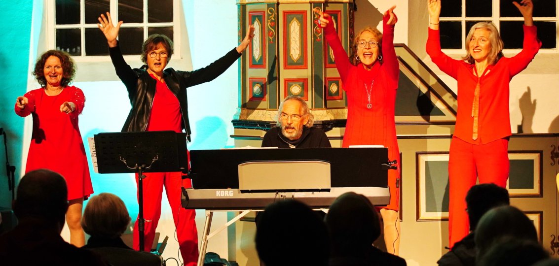 Neben modernen geistlichen und weltlichen Stücken aus England, Frankreich, Skandinavien, Amerika und Deutschland präsentieren die vier Damen und ihr Pianist auch bekannte Stücke aus Film und Musical. Das Gros der Stücke wird instrumental von Pianist Wolfgang Klösel unterstützt, aber auch einige A-cappella-Werke und Eigenarrangements werden zu hören sein. Mitglieder des Ensembles sind Gaby Dinglinger (1. Sopran), Kerstin Heinisch (1. u. 2. Sopran), Silvia Klösel (1. Alt), Katharina Heid (2. Alt), Wolfgang Klösel (Bariton und Klavier). Karten gibt es für 12 Euro in der Touristinfo der Stadt Haiger (Hauptstraße 46), E-Mail: kulturamt@haiger.de, Telefon 02773-811480. An der Abendkasse kostet der Eintritt 15 Euro.