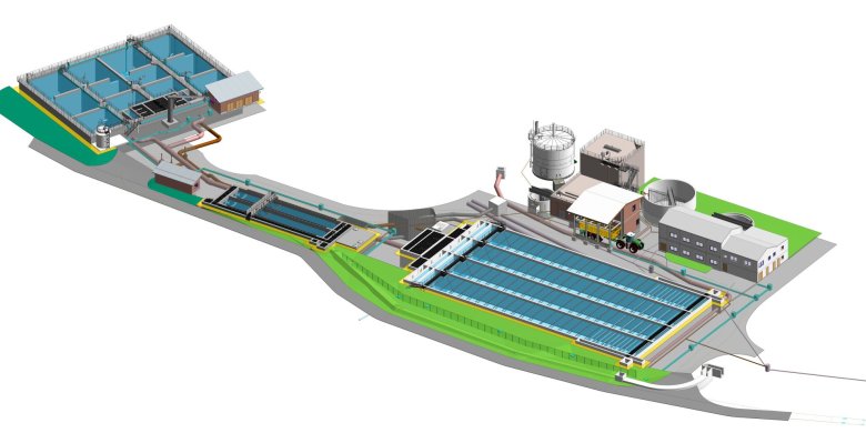 Eine grafische Darstellung des Planungsentwurfs für die neue 2-straßige Kläranlage vom Ingenieurbüro Kocks Consult.Fördermittel